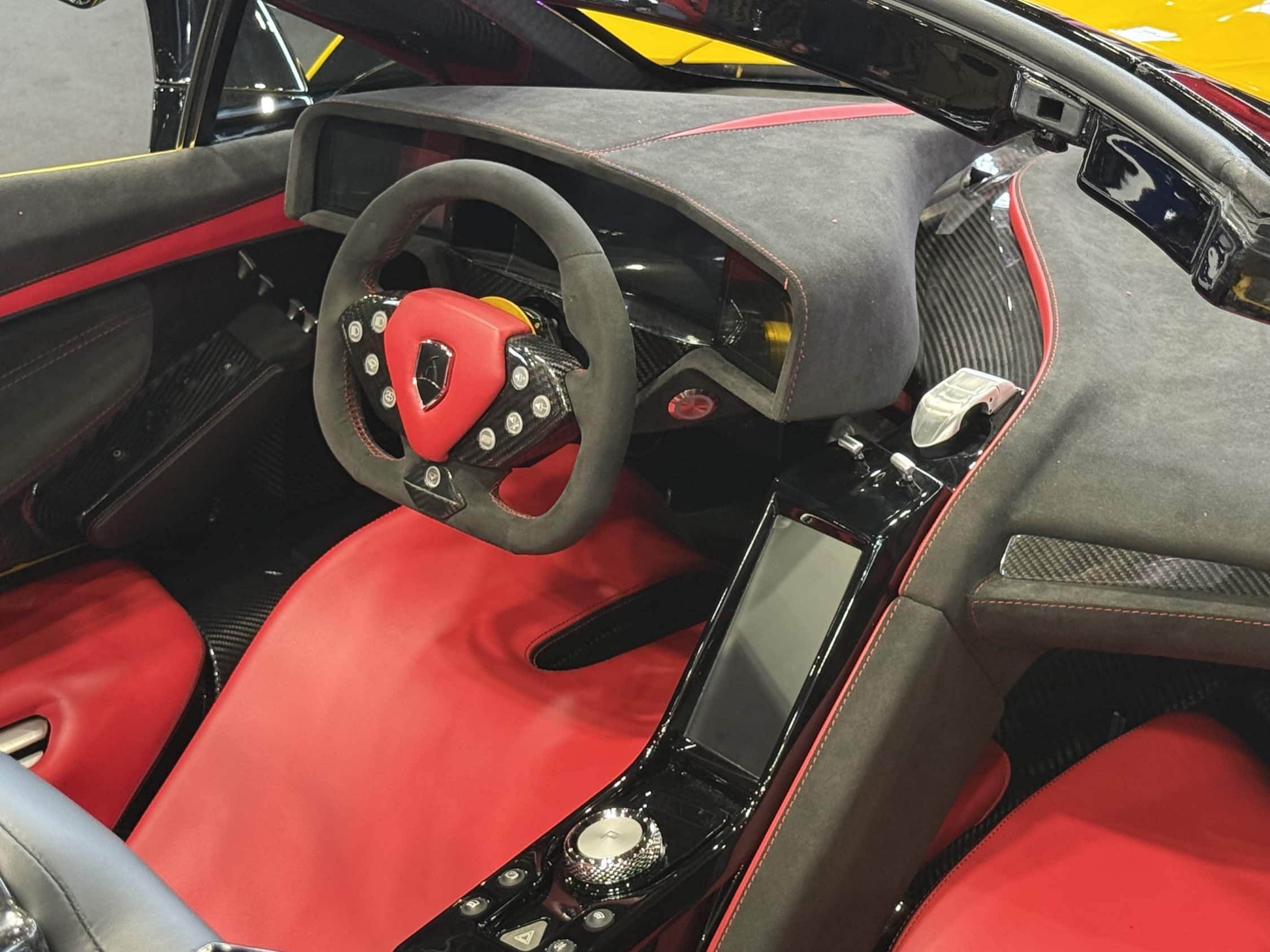 L’Aspark OWL Roadster est la version découvrable de l’hypercar 100 % électrique japonaise. La carrosserie repose sur une structure monocoque en fibre de carbone, avec des portes « falcon wing ». Le véhicule propose quatre moteurs électriques (pour quatre roues motrices) délivrant une puissance combinée de 1 953 ch et un couple total de 1 920 Nm. L’architecture électrique fonctionne sur une batterie lithium-ion NMC de 69 kWh à 800 V. En recharge standard (22 kW), le passage de 20 % à 80 % prend 3 heures ; en recharge rapide (100 kW), il faut environ 45 minutes pour la même plage. Les performances annoncées incluent les 0 à 100 km/h en 1,78 s, 0 à 300 km/h en 9,74 s, et une vitesse maximale de 413 km/h (qu’il est possible d’auto-limiter pour des raisons de sécurité). L’autonomie estimée est de 250 km, tandis que le poids à vide se chiffre à environ 2 050 kg. Parmi les équipements figurent des freins en carbone-céramique, des suspensions à double triangle avec réglage hydraulique, un dispositif d’aérodynamique actif, et divers modes de conduite (Rain-Snow, City-Comfort, Sport-Dynamic, High Boost). L’habitacle utilise des matériaux premium (Alcantara, carbone visible) et reste personnalisable en couleurs, cuirs et coutures. Seulement une vingtaine d’exemplaires seront fabriqués.