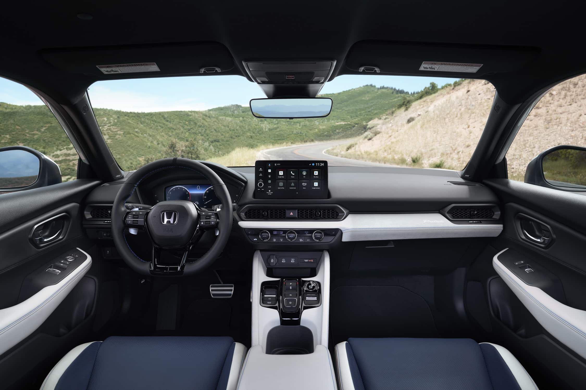 Dans 4,30 m de longueur, la Prelude 6 réinterprète donc la partition. Exit, bien sûr (malheureusement !) les expressives motorisations VTEC de l’époque, elle adopte désormais la chaîne de traction hybride — un bloc 4 cylindres 1,5 l à cycle Atkinson associé à un moteur électrique — de la Honda Civic, berline compacte avec laquelle elle partage aussi la plateforme. La puissance cumulée se monte à 200 chevaux, pour une vitesse maxi de 180 km/h et un 0 à 100 km/h en un peu moins de 8 secondes. Si on est loin des performances d’une sportive — que la Prelude n’a jamais été malgré sa ligne —, on reste définitivement dans l’esprit GT d’une voyageuse efficace.