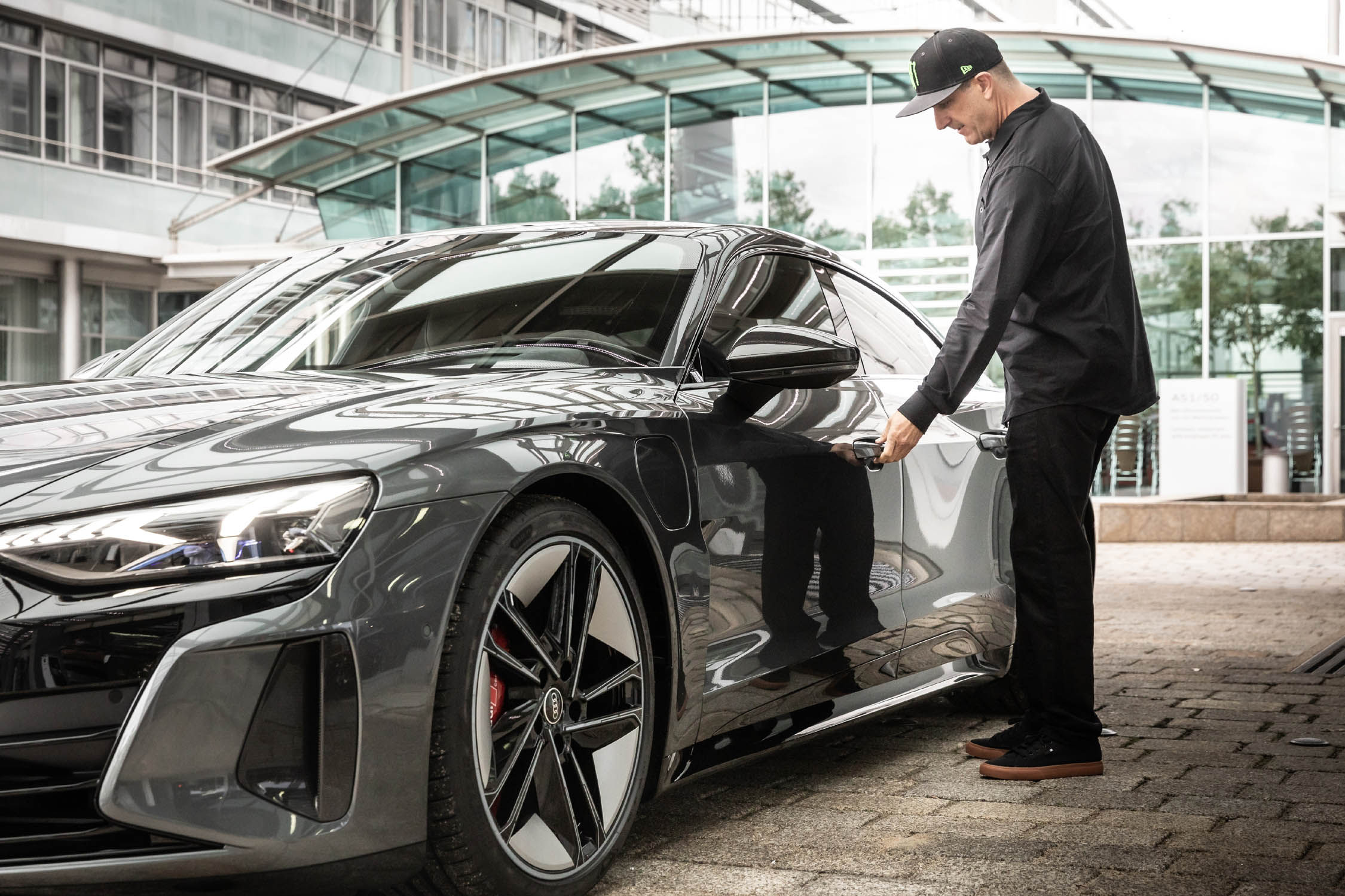 En attendant de développer des projets liés exclusivement à la mobilité électrique, l’Américain a pu prendre les commandes de l’Audi Sport quattro S1 et de l’Audi V8 quattro du DTM, deux modèles fumant et bruyant avec lesquels le rallyman a pris beaucoup de plaisir. Mais il a également apprécié de prendre place à bord de l’Audi e-tron Vision Gran Turismo animée par une cavalerie électrique de 800 ch, et de s’installer aux commandes de l’Audi RS e-tron GT, le plus puissant des modèles de la gamme Audi.