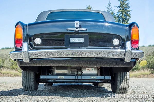 Une mission confiée à SHIFTev, une entreprise basée dans l’Oregon, qui a tout simplement intégré au châssis de la berline britannique le groupe propulseur et le pack batterie de 75 kwH de la Tesla Model S (modèle 2016). La voiture a également été équipée des systèmes ABS, TPMS, du traction control et du contrôle de stabilité de la Model S, ainsi que de sa direction électrique assistée, de son système de freinage et de son système d’air conditionné.