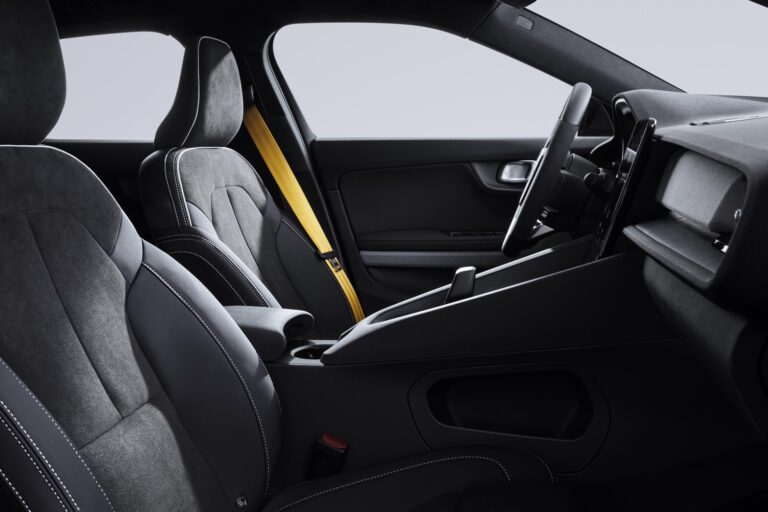 En termes de design, les améliorations apportées à la Polestar 2 BST édition 230 incluent enfin une peinture « Nebula » verte exclusive et un habillage intérieur en textile MicroSuede pour les sièges et les inserts de volant (matériau fabriqué à partir de textile Nubuck partiellement recyclé). La livrée extérieure peut également être commandée dans une teinte noire (dite « Space ») et se voir agrémentée d’une bande de couleur (optionnelle) courant sur toute la longueur de la carrosserie.