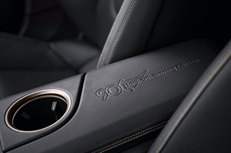 Des badges spécifiques « 90th Anniversary » accompagnés d’un motif représentant le tracé d’Hockenheim, figurent également parmi les finitions exclusives de cette édition spéciale et se retrouvent dans l’habitacle du véhicule habillé d’un cuir noir agrémenté de surpiqûres de couleur « Island Green ». Les clés du véhicule reçoivent enfin elles aussi ce marquage spécifique.