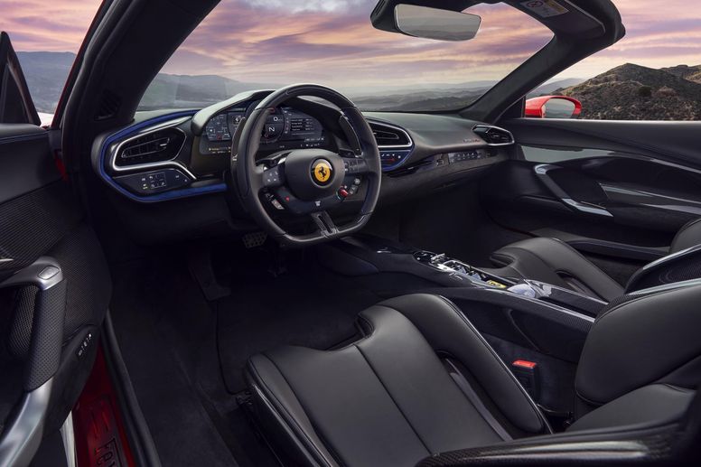 Côté mécanique, la Ferrari 296 GTS est animée par le même groupe hybride rechargeable que celui animant la 296 GTB. Celui-ci est articulé autour d’un bloc V6 3.0 litres Turbo de 663 ch, auquel est greffé un moteur électrique de 167 ch assurant ainsi au modèle une cavalerie totale de 830 ch et 740 Nm. L’ensemble est associé à une boîte à 8 rapports et au système E-Diff, et Ferrari précise que sur le modèle 296 GTS, le « hot tube » breveté adopté sur la 296 GTB, et positionné avant les systèmes de traitement des gaz d’échappement, a été entièrement revu afin d’améliorer encore le son du moteur, que le toit soit déployé ou rétracté.