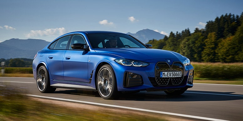 L’électrique prend plusieurs formes chez BMW. D’une part, les modèles dédiés, inédits, et qui n’existent qu’en version zéro émission (i3, iX). D’autre part, les versions à batteries de modèles déjà existants, comme l’iX3 ou cette nouvelle i4, qui n’est autre que la version 100 % électrique de la Série 4 Gran Coupé. Pour cette dernière, la parenté est si évidente entre les deux versions qu’il en devient presque ardu de les différencier, surtout que cette M50 a enfilé sa tenue de sport. La calandre pleine, l’absence de sortie d’échappement et quelques logos trahissant à peine le mode de propulsion du modèle.