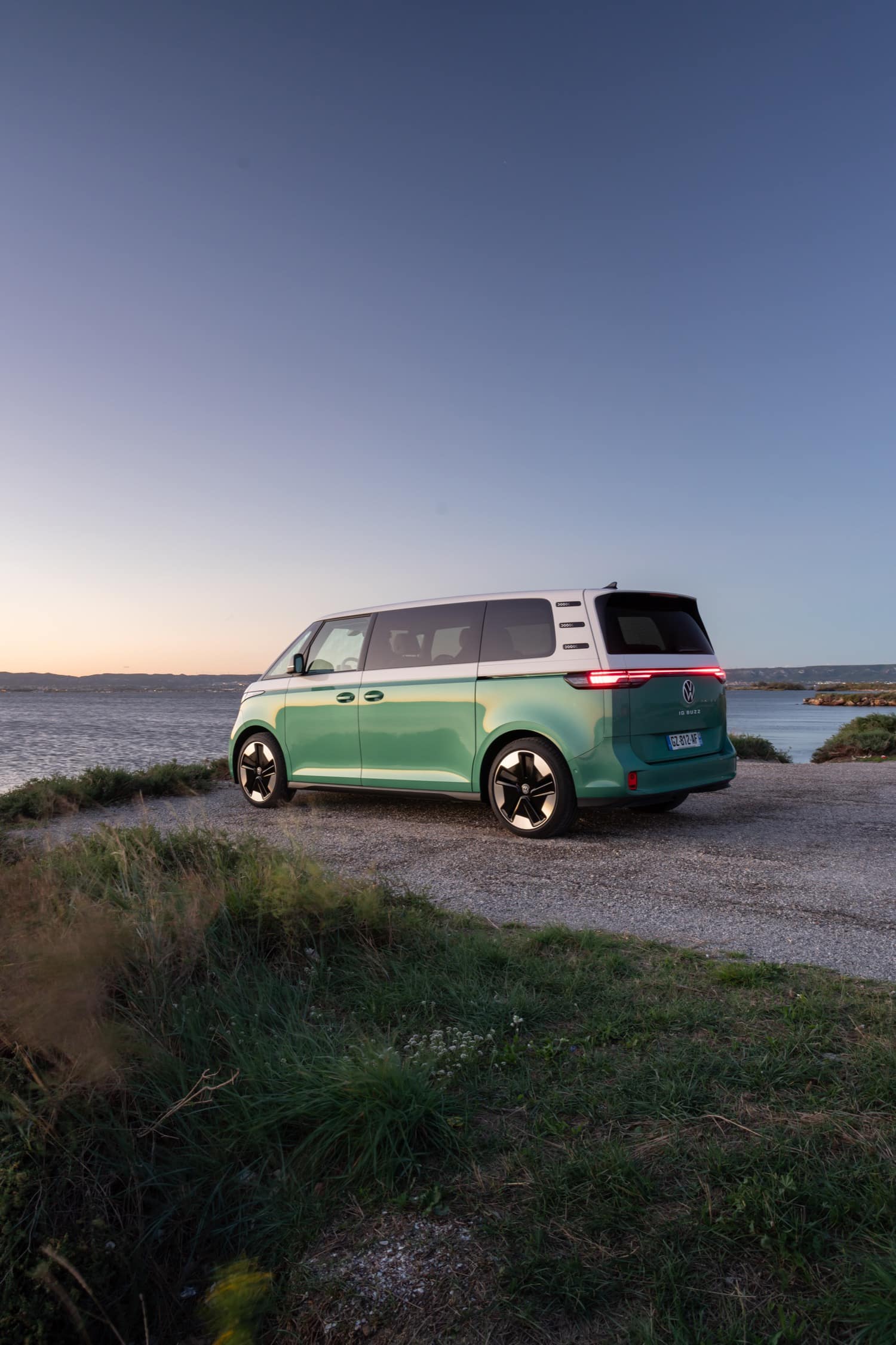Ce nouvel ID. Buzz long (4,96 m) voit son empattement allongé de 25 cm, qui ne sont pas de trop pour caser les passagers supplémentaires et leurs bagages. Les portes latérales coulissantes, allongées de 19 cm, facilitent l’accès aux places arrière. Avec un diamètre de braquage optimal (11,80 m entre trottoirs), l’ID. Buzz rallongé reste facile à manœuvrer en ville malgré ses dimensions imposantes.
