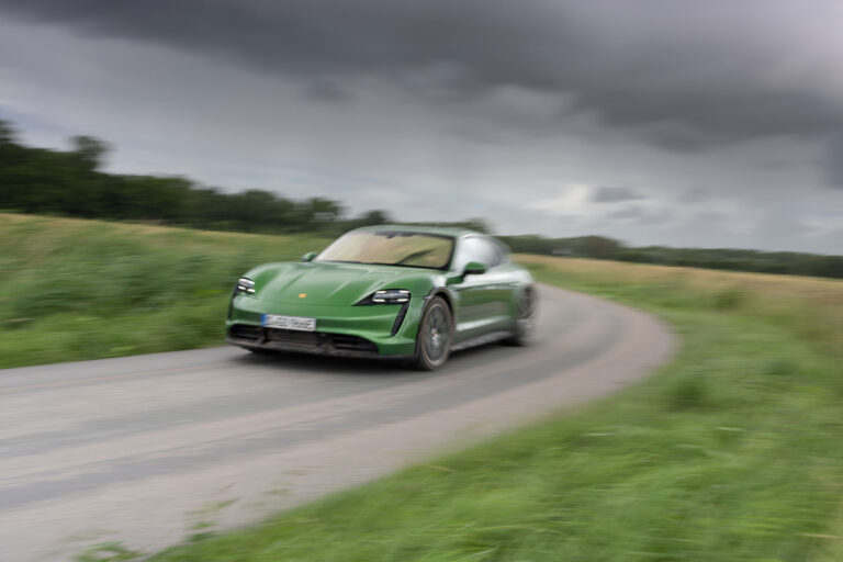 Entrée fracassante pour Porsche dans le monde grandissant du tout électrique, la Taycan est rapidement devenue un modèle d’importance pour la firme allemande. La grande berline survoltée jouant même des ailes avec la Reine 911 au palmarès des ventes. Un véritable succès commercial qui conforte la marque dans l’expansion de la gamme Taycan. Nouvelle venue donc, cette Cross Turismo mêle les mondes, entre la praticité – relative – d’un break de chasse à la ligne spectaculaire, et la polyvalence en tout chemin d’un SUV gentiment baroudeur. Une nouvelle variante que l’on avait déjà très clairement découverte en 2018 sous la forme du concept Mission E Cross Turismo. Des attributs lui permettant de composer avec une certaine polyvalence. Si la longueur totale ne gagne qu’un petit centimètre, la ligne de toit moins fuyante et le nouveau hayon augmentent l’espace habitable. On a ici 40 litres de coffre en plus et 4,5 cm de garde au toit supplémentaire aux places arrière. Pas de quoi en faire le break ultime en aspects pratiques, mais l’intention est louable. En bonne baroudeuse, cette version Cross Turismo n’est disponible qu’avec la transmission intégrale (comprenez un moteur électrique sur chaque essieu), et la grosse batterie de 93,4 kWh (83,7 utiles). Le catalogue se compose de l’entrée de gamme 4 (476 ch, 96 254 €), de la 4S (571 ch, 114 814 €), de la Turbo (680 ch, 157 774 €) et de la Turbo S (761 ch, 191 374 €). A noter que les puissances indiquées concernent la puissance maximum avec overboost, mais on y reviendra.