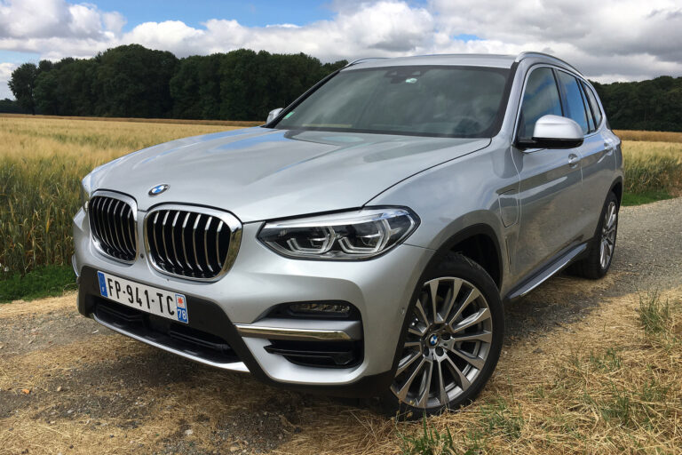Au total, les performances procurent un certain plaisir, surtout que le châssis permet de les exploiter aisément. Adhérence, équilibre et amortissement sont de haut niveau, pour un véhicule non sportif s’entend, alors que les mouvements de caisse sont convenablement contenus, même dans le sinueux. Sur autoroute, l’engin file droit, tandis que la conduite autonome Assist Pro (option à 1 450 €) fonctionne de façon pertinente. Bref, globalement, ce BMW X3 sDrive30e remplit son contrat. Quant à la consommation moyenne de cet essai, elle s’établit à 7,1 l/100 km. C’est bien plus qu’annoncé (preuve que la norme WLTP avantage nettement les hybrides plug-in) mais reste bas vu la puissance et le poids du véhicule.