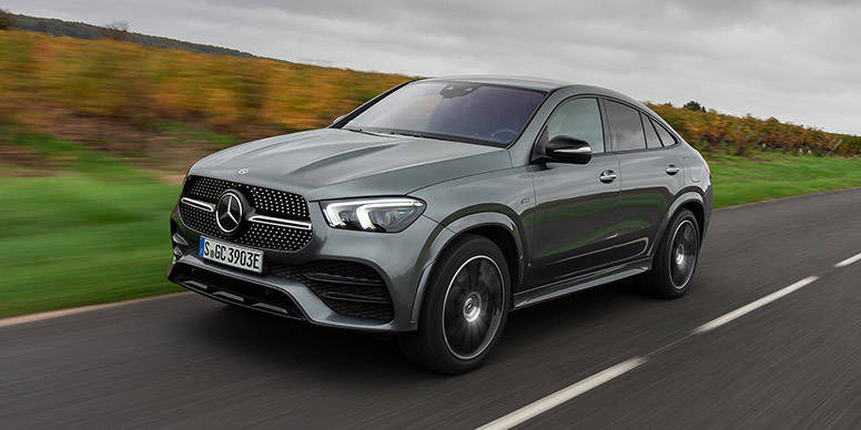 Ce SUV, que nous essayons en coupé, adopte en thermique un 4-cylindres 1,95 l de 194 ch qu’il combine avec un bloc électrique de 136 ch, pour une puissance totale exploitable de 320 ch. Pour sa part, le couple cumulé ressort à 700 Nm. Pas de trop vu le poids énorme du GLE : 2 690 kg ! Il faut dire que l’engin embarque des batteries de 31,2 kWh bruts (25,2 kWh nets), une capacité importante pour un véhicule hybride. Celles-ci autorisent, selon le constructeur, une autonomie en mode zéro émission de 99 km au maximum, un chiffre très intéressant. Pour sa part, le chargeur embarqué de 7,4 kW permet une recharge totale en 4h13 sur une Wallbox, voire 13h30 sur secteur. La batterie est garantie 6 ans ou 100 000 km, si elle tombe sous les 70 % de capacité maximum utilisable. La motorisation s’associe à une transmission intégrale, contenant un différentiel central doté d’un embrayage multidisques, le tout pouvant faire varier le couple automatiquement entre les deux essieux, et en envoyer la totalité sur l’un ou l’autre selon les circonstances. Pour sa part, la boîte automatique compte 9 rapports, tandis que la suspension, gérée par électronique, recourt à des coussins d’air. Elle complète des trains roulants raffinés, se composant d’une double triangulation à l’avant et d’un essieu multibras à l’arrière. Une belle fiche technique !