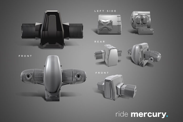 Ride Mercury a développé une solution de rétrofit. Il s’agit d’implanter une motorisation électrique dans une moto de plus de trois ans. Ce reconditionnement permet de réduire encore de 50 % environ l’empreinte carbone par rapport à la production d’une moto électrique neuve. Cette opération est devenue légale, dans un cadre législatif et réglementaire précis, bien entendu, depuis le 3 avril 2020. Pour développer sa solution, Ride Mercury s’est associée à Noil, une entreprise française qui s’est fait connaître pour ses kits d’électrification pour Solex et Peugeot 103. Mais avec Ride Mercury, on s’attaque à des motos de caractère et de plus grosse cylindrée. La première base de travail est l’emblématique série R de BMW Motorrad. Les deux fondateurs de Mototherapy et de Ride Mercury sont avant tout de vrais passionnés de moto. Ils ont donc développé une solution qui respecte au maximum la moto originelle. L’âme de cette BMW réside pour beaucoup dans son emblématique moteur Boxer, un bicylindre à plat dont le moteur électrique en aluminium reprend les grands traits. Les batteries viennent se loger dans les carters pour un maximum de discrétion. L’ensemble est conçu et fabriqué ou tout du moins assemblé en France.