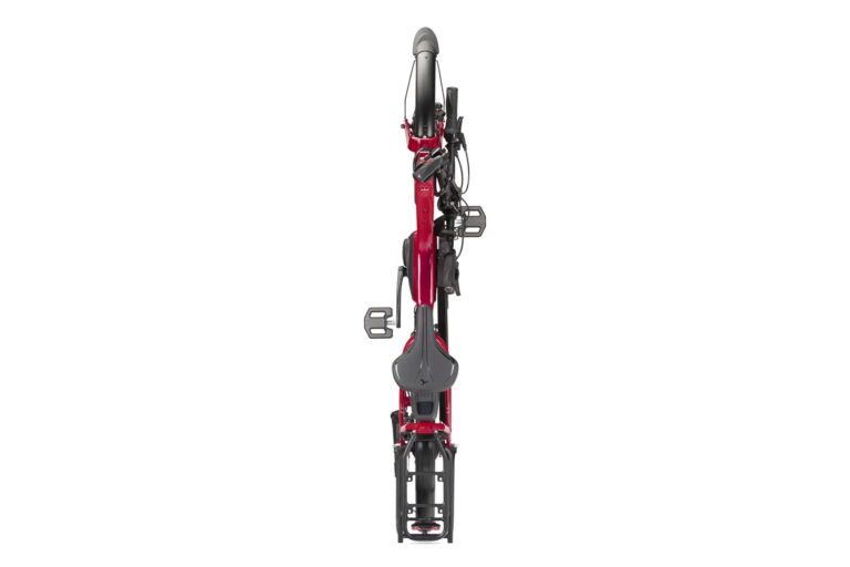 Pour rassurer encore plus les utilisateurs, le vélo dispose de bases arrière plutôt longues pour une stabilité optimale, tandis que les petites roues de 20 pouces assurent une maniabilité convenable. Le moteur central et l’original positionnement de la batterie externe participent au rabaissement du centre de gravité. Le poste de pilotage accueille une potence spécifique permettant de régler sa hauteur sans outil. La tige de selle qui offre une grande latitude de réglage propose des graduations. Pratique pour trouver facilement sa position parfaite ou lorsque plusieurs personnes, morphologiquement assez différentes, sont amenées à utiliser le vélo.
