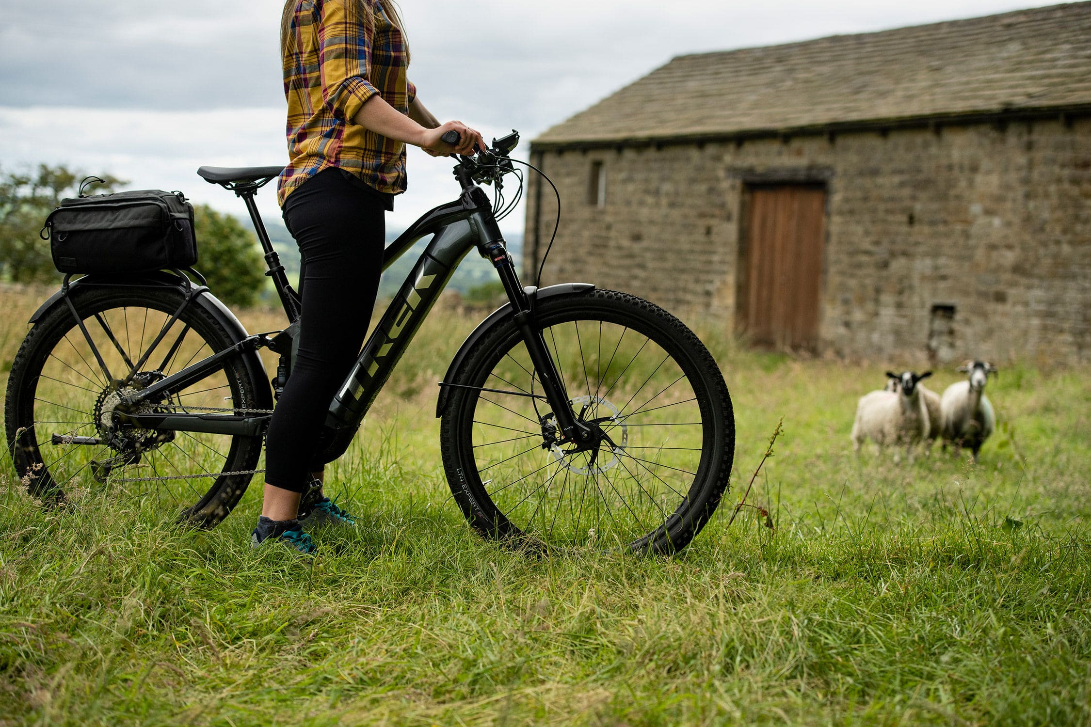 Un VAE bon à tout faire qui pourrait être le nouveau Powerfly FS 2021 dans sa version « Equipped ». Il s’agit d’un tout suspendu disposant à l’arrière de 100 mm de débattement et à l’avant d’une fourche de 120 mm. Le cadre en aluminium Alpha Platinum accueille des roues de 29 pouces chaussées de pneus Bontrager LT4 Expert de 2,40 pouces de large sur les tailles M, L et XL. En effet, Trek a opté pour des 27,5 pouces pour les petites tailles soit ici le XS et le S. Les modèles dits équipés se distinguent par la présence d’un porte-bagages, de garde-boue, d’une béquille et d’un éclairage avant et arrière.
